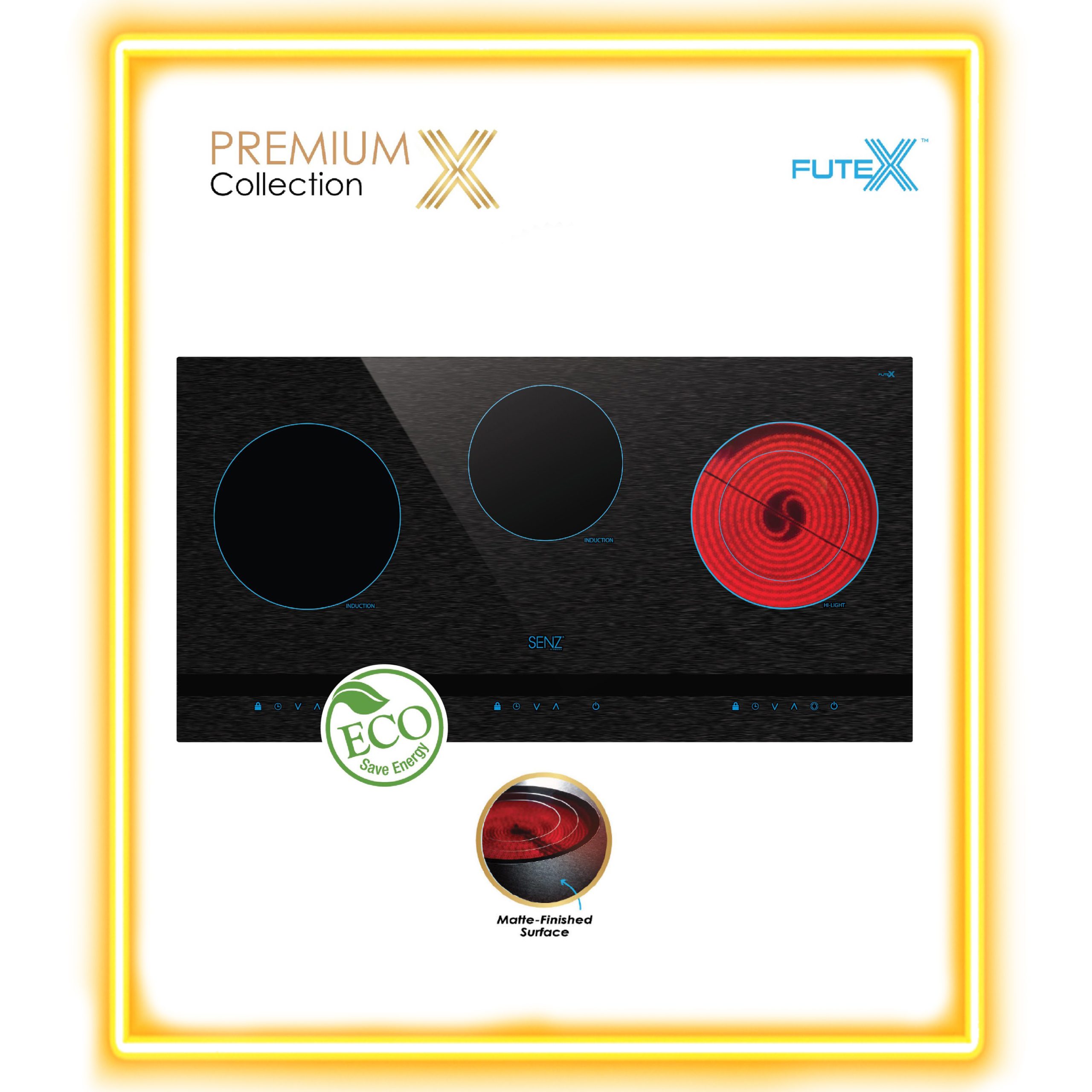 - Triple Heating Zone – Induction (Left) + Induction (Middle) + Ceramic (Right) for multi-style cooking