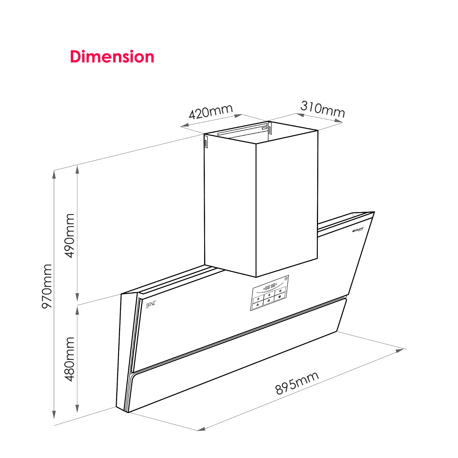 SENZ VISTA Slim L Shape Design Heat Pro intelClean Cooker Hood