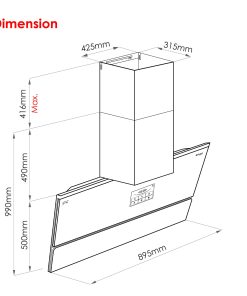 - 2700 m3/h Suction Power + Turbo Boost – effectively remove grease, smoke, and airborne particles