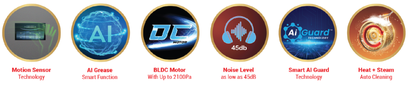 - AI Grease Smart Function – able to detect the level of grease and adjust its suction power accordingly