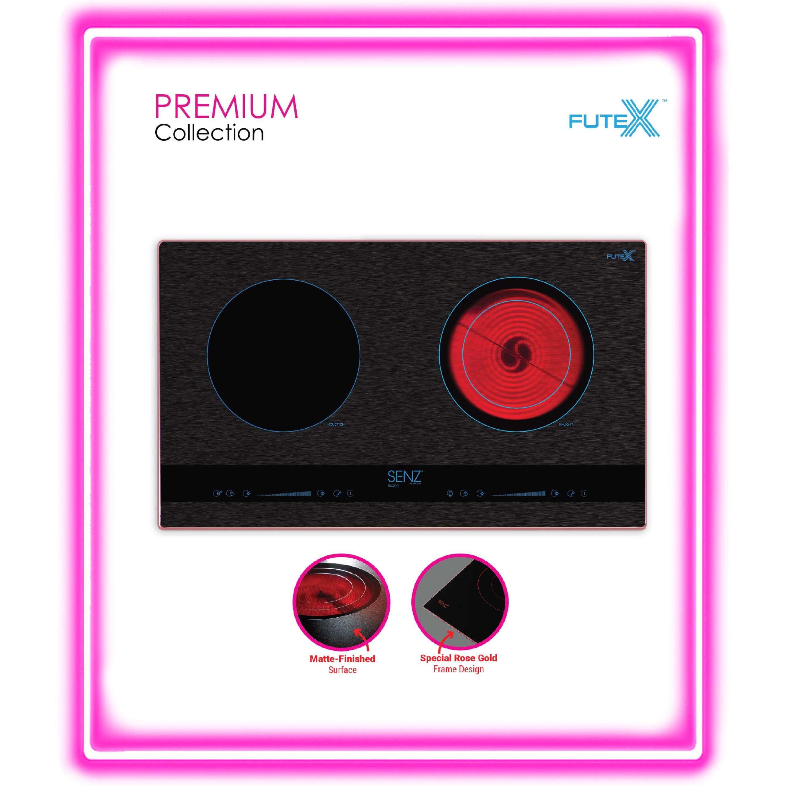 • Special Rose Gold Frame – designed to match the invisible button, for a sleek and stylish finish
